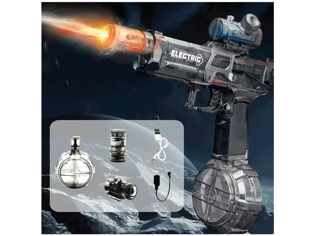 La Pistola de Agua Ultrafire es ideal para quienes buscan más que solo remojarse. Con su capacidad de expulsar agua a alta presión y su sistema de carga rápida, cada batalla de agua se convierte en un desafío emocionante. Además, su efecto de luz y diseño tipo láser añaden un toque especial a las noches.